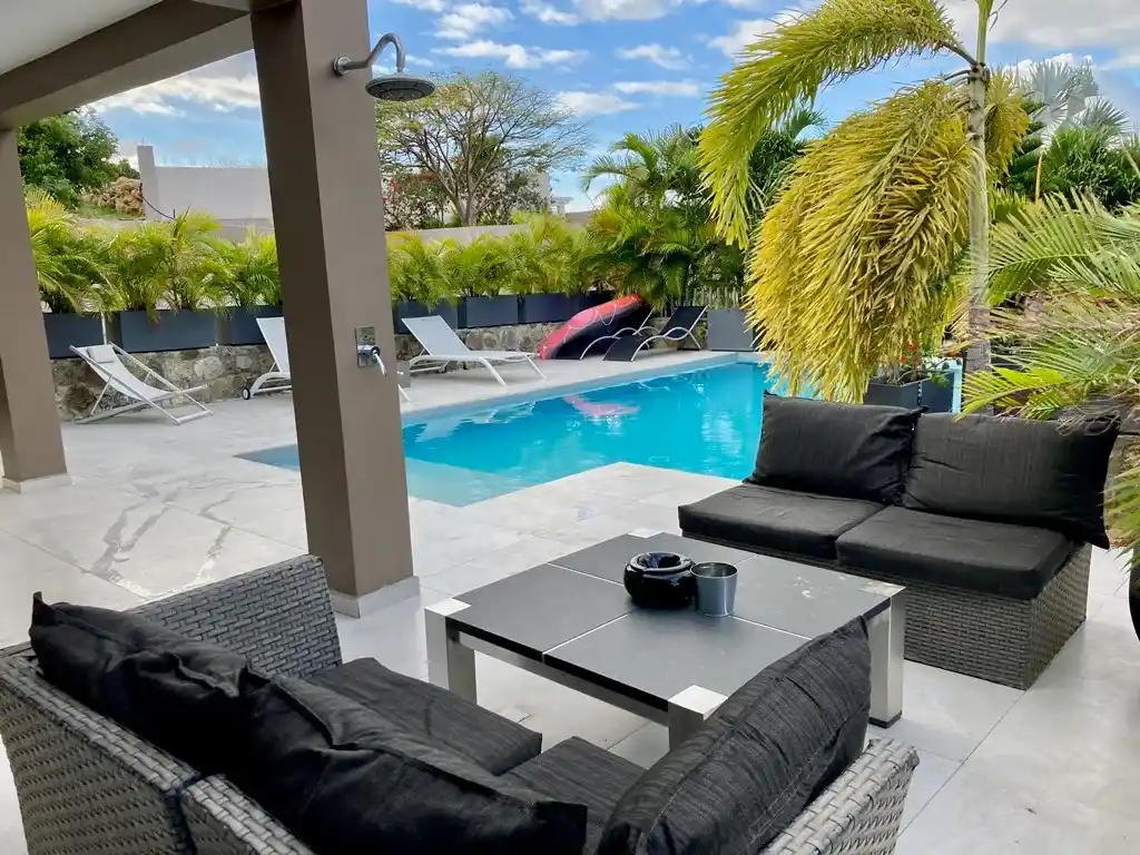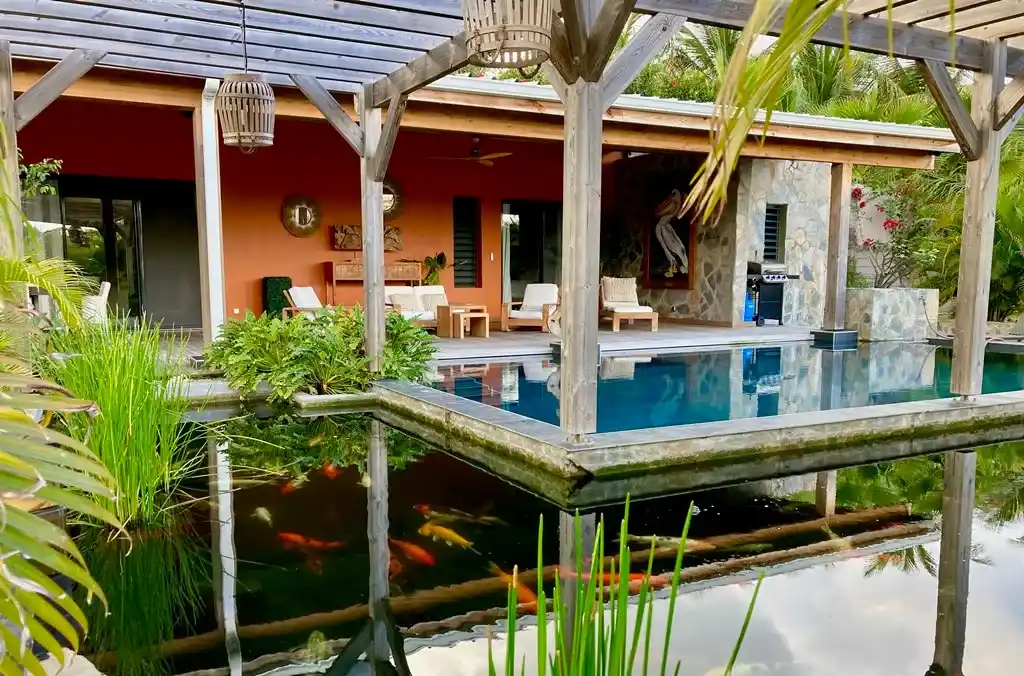 Villa 3 bedrooms, private pool with covered terrace, koi pond.